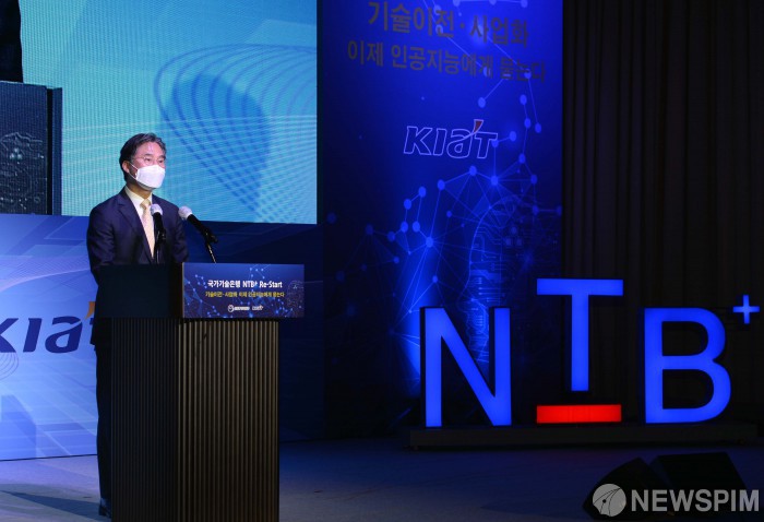 [서울=뉴스핌] 박진규 산업통상자원부 차관이 27일 오후 서울 역삼동 조선팰리스호텔 에서 열린 국가기술은행(NTB) 개편 출범식 참석 축사를 하고 있다. [사진=산업통상자원부 ] 2021.5.27 photo@newspim.