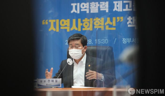 [서울=뉴스핌] 김학선 기자 = 전해철 행정안전부 장관이 28일 서울 종로구 정부서울청사에서 열린 지역사회혁신 책임관 회의를 주재하고 있다. 2021.05.28 yooksa@newspim.com