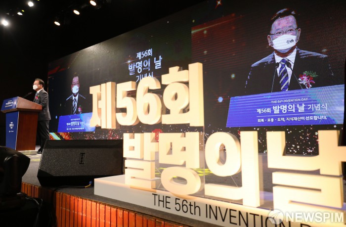 [서울=뉴스핌] 윤창빈 기자 = 김부겸 국무총리가 31일 오후 서울 여의도 63컨벤션센터에서 열린 제56회 발명의 날 기념식에 참석해 기념사를 하고 있다. 2021.05.31 pangbin@newspim.com