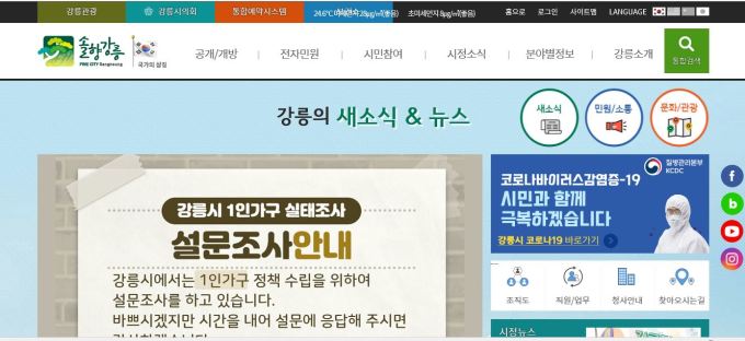 | 강릉시 메인 홈페이지 캡쳐 화면.021.06.04 grsoon815@newspim.com |