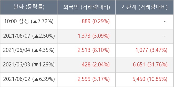 [표] 외국인ㆍ기관 순매매량 (단위 주)