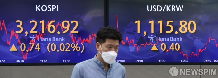 [서울=뉴스핌] 정일구 기자 = 10일 코스피 지수가 전 거래일(3216.18)보다 0.76포인트(0.02%) 오른 3216.94에 출발했다. 코스닥 지수는 전 거래일(978.79)보다 0.73포인트(0.07%) 상승한 979.52에 개장했다. 원·달러 환율은 전 거래일(1115.4원)보다 1.6원 오른 1117.0원에 출발했다. 이날 오전 서울 중구 하나은행 딜링룸에서 딜러들이 업무를 보고 있다. 2021.06.10 mironj19@newspim.com