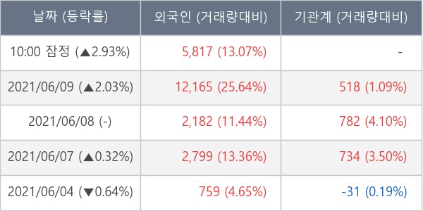 [표] 외국인ㆍ기관 순매매량 (단위 주)