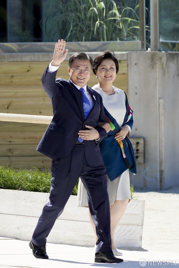 G7 초청국 공식 환영식 참석하는 문재인 대통령 내외
