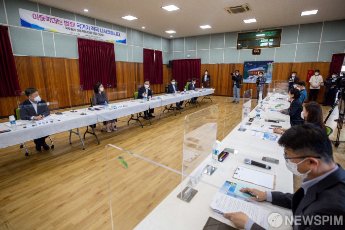 [서울=뉴스핌] 정일구 기자 = 김부겸 국무총리가 21일 오후 서울 은평구 서울꿈나무마을에서 열린 아동학대 대응 현장 간담회에서 모두발언을 하고 있다. 2021.06.21 mironj19@newspim.com
