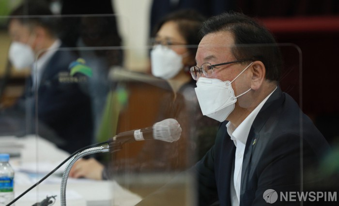 [서울=뉴스핌] 정일구 기자 = 김부겸 국무총리가 21일 오후 서울 은평구 서울꿈나무마을에서 열린 아동학대 대응 현장 간담회에서 모두발언을 하고 있다. 2021.06.21 mironj19@newspim.com