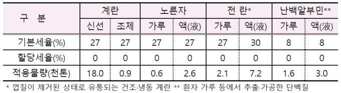 계란류 8개 품목…3만6000톤 규모