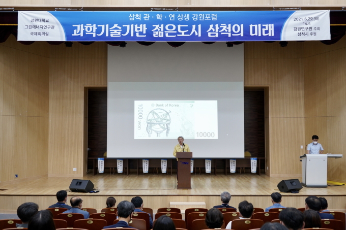[삼척=뉴스핌] 이형섭 기자 = 강원 삼척시는 29일 강원대학교 삼척캠퍼스 그린에너지연구관에서 관학연 상생협력 강원포럼을 개최했다.