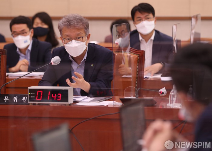 [서울=뉴스핌] 최상수 기자 = 권칠승 중소벤처기업부 장관이 30일 오후 여의도 국회에서 열린 법제사법위원회 전체회의에 출석해 의원들의 질의에 답변하고 있다. 2021.06.30 kilroy023@newspim.com