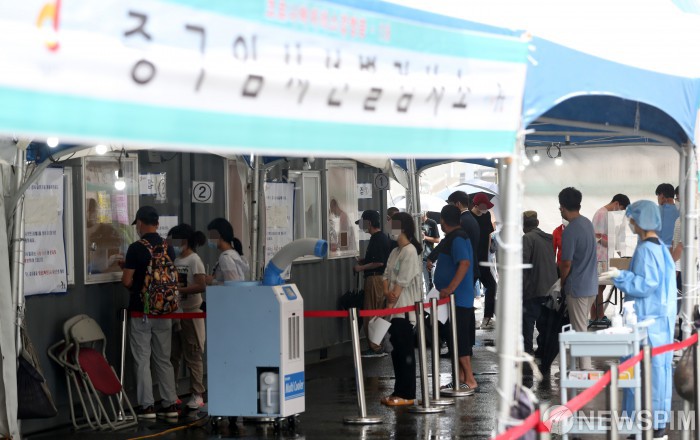[서울=뉴스핌] 정일구 기자 = 신종 코로나바이러스 감염증(코로나19) 신규 확진자가 올해 토요일 기준 첫 700명대를 기록한 4일 오전 서울 중구 서울역 광장에 마련된 임시 선별검사소에서 시민들이 검사를 받기 위해 줄지어 서있다. 중앙방역대책본부는 이날 0시 기준 국내 신규 확진자가 743명이 늘어 16만84명이라고 밝혔다. 2021.07.04 mironj19@newspim.com