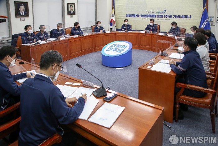 [서울=뉴스핌] 최상수 기자 = 더불어민주당 송영길 대표가 5일 국회 당대표실에서 열린 미래전환 K-뉴딜위원회 출범 1주년 기념행사에 참석해 발언하고 있다. 2021.07.05 kilroy023@newspim.com