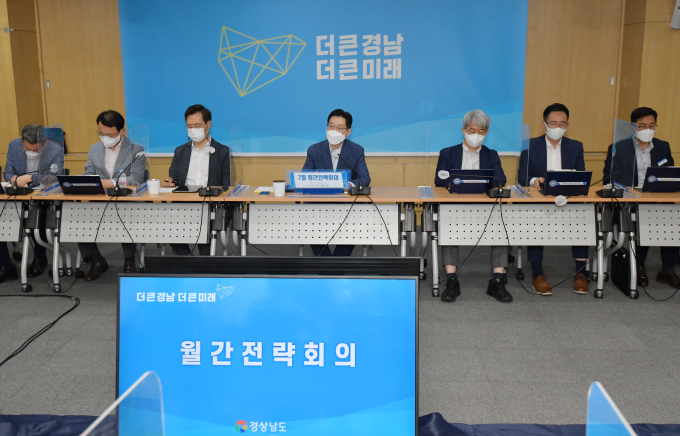 | 김경수 경남도지사(가운데)가 5일 오전 도청 도정회의실에서 열린 7월 월간전략회의에 참석해 코로나19 백신 예방 접종과 관련해 이야기를 나누고 있다.[사진=경남도] 2021.07.05 news2349@newspim.com |