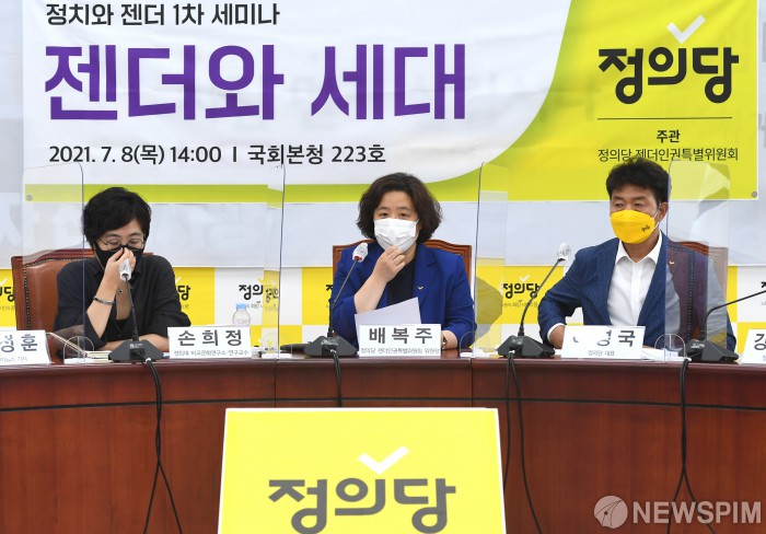 [서울=뉴스핌] 최상수 기자 = 배복주 정의당 젠더인권특별위원회 위원장이 8일 오후 서울 여의도 국회에서 열린 정치와 젠더 1차 세미나 '젠더와 세대'에서 발언을 하고 있다. 2021.07.08 kilroy023@newspim.com