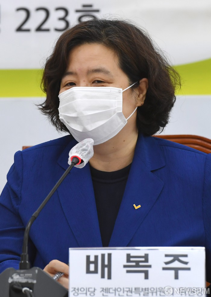 [서울=뉴스핌] 최상수 기자 = 배복주 정의당 젠더인권특별위원회 위원장이 8일 오후 서울 여의도 국회에서 열린 정치와 젠더 1차 세미나 '젠더와 세대'에서 발언을 하고 있다. 2021.07.08 kilroy023@newspim.com