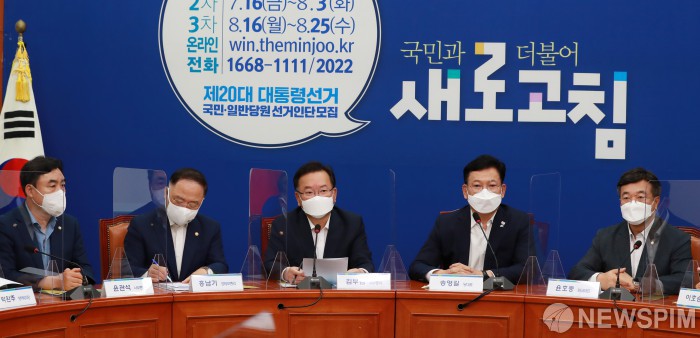 [서울=뉴스핌] 이형석 기자 = 김부겸 국무총리가 19일 오전 서울 여의도 국회에서 고위당정협의회에서 인사말을 하고 있다. 더불어민주당과 정부는 이날 협의회에서 재난지원금 지급을 포함한 추가경정 예산안을 논의한다. 2021.07.19 leehs@newspim.com