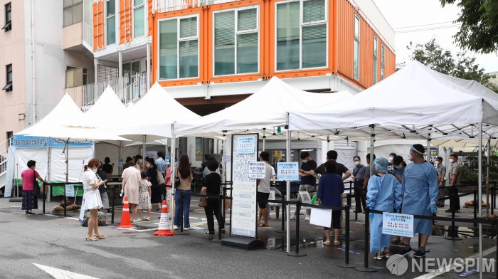 [서울=뉴스핌] 백인혁 기자 = 신종 코로나바이러스(코로나19) 신규 확진자 2주 연속 1000명대를 기록한 20일 오후 서울 동작구 동작구청 임시선별검사소에서 시민들이 검사를 받기 위해 줄을 서고 있다. 중앙방역대책본부는 이날 0시 기준으로 신규 확진자가 1278명 늘어 누적 18만481명이라고 밝혔다. 2021.07.20 dlsgur9757@newspim.com
