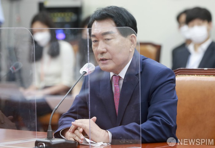 [서울=뉴스핌] 이형석 기자 = 안상수 전 국회의원이 20일 오후 서울 여의도 국회에서 열린 국민의힘 대선예비후보 접수자 면접에서 모두발언을 하고 있다. 2021.07.20 leehs@newspim.com