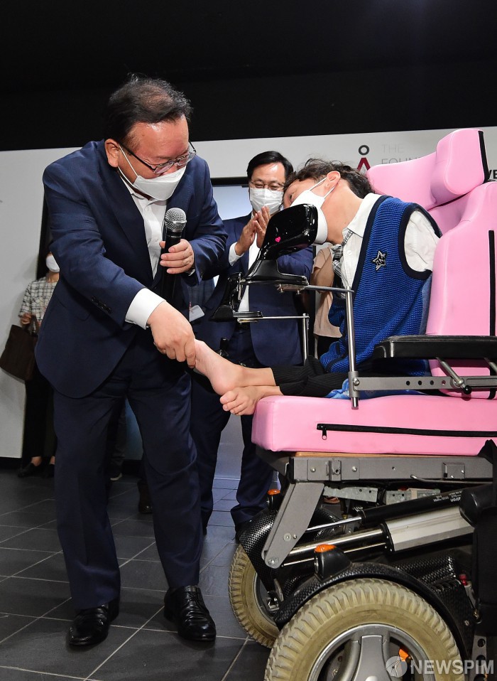 [서울=뉴스핌] 최상수 기자 = 김부겸 국무총리가 26일 서울 은평구에 위치한 사회복지법인 엔젤스헤이븐을 찾아 지원주택 입주자 대표인 유태호 씨와 인사를 나누고 있다. 2021.07.26 kilroy023@newspim.com