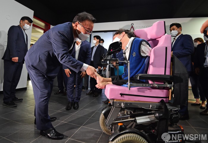 [서울=뉴스핌] 최상수 기자 = 김부겸 국무총리가 26일 서울 은평구에 위치한 사회복지법인 엔젤스헤이븐을 찾아 지원주택 입주자 대표인 유태호 씨와 인사를 나누고 있다. 2021.07.26 kilroy023@newspim.com
