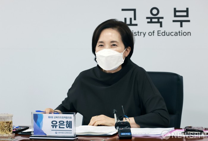 [서울=뉴스핌] 유은혜 사회부총리 겸 교육부 장관이 지난 27일 정부세종청사에서 열린 '제8회 교육자치정책협의회'에서 모두발언을 하고 있다. [사진=교육부] 2021.07.28 photo@newspim.com