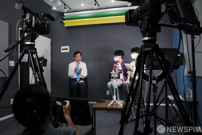 [서울=뉴스핌] 국회사진취재단 = 더불어민주당 대선 경선후보인 이낙연 전 대표가 29일 서울 관악구 서울대 중앙도서관 관정관 미디어플렉스 스튜디오에서 서울대 사회과학대학 학생회 주최로 열린 청년 토크 콘서트에 참석, 학생들의 질문에 답변하고 있다. 2021.07.29 photo@newspim.com
