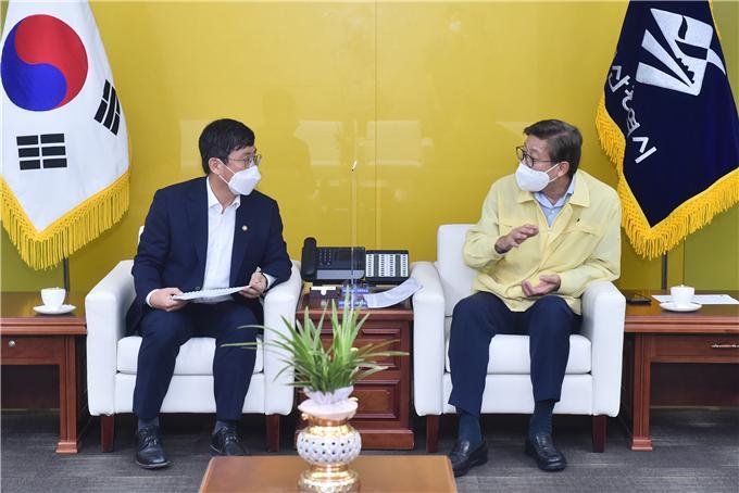 부산시는 5일 오전 9시 30분에 부·울·경 지역 예산협의회에 참석차 부산시청을 방문한 안도걸 기획재정부 제2차관과 한경호 재정관리국장 등과 간담회를 개최했다고 밝혔다.