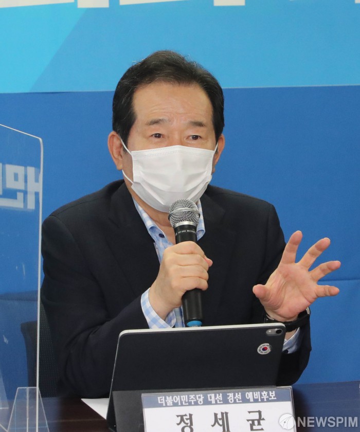 [서울=뉴스핌] 이형석 기자 = 정세균 더불어민주당 대선 예비후보가 6일 오전 서울 여의도 용산빌딩에서 열린 '스타트업 기업인들과의 대화'에서 발언을 하고 있다. 2021.08.06 leehs@newspim.com