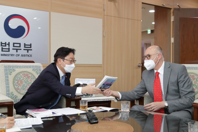 이에 앙거홀처 대사는 "다른 분야와 더불어 법무 분야에 있어서도 양국 간 교류와 협력을 확대해나가는 방안을 모색하자는데 공감한다"고 답했다.