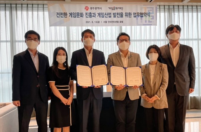 [광주=뉴스핌] 전경훈 기자 = 광주시와 게임문화재단은 13일 오전 서울 그랜드 인터컨티넨탈호텔 파르나스에서 건전한 게임문화 진흥과 게임산업 발전을 위해 업무협약을 체결했다.