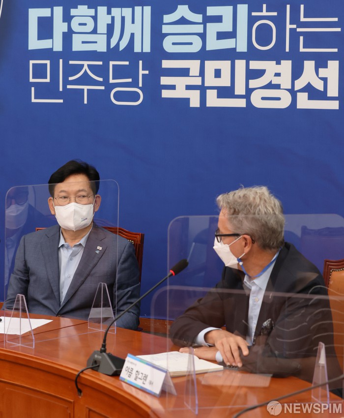 [서울=뉴스핌] 최상수 기자 = 야콥 할그렌(Jakob Hallgren) 주한 스웨덴 대사가 17일 오전 서울 여의도 국회 에서 송영길 더불어민주당 대표를 접견, 인사말을 하고 있다. 2021.08.17 kilroy023@newspim.com