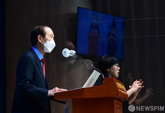 [서울=뉴스핌] 최상수 기자 = 국민의힘 대선 예비후보인 장기표 국민의힘 경남 김해을 당협위원장이 17일 서울 여의도 국회 소통관에서 ‘망국7적 정책시리즈’ 기자회견을 갖고 있다. 2021.08.17 kilroy023@newspim.com