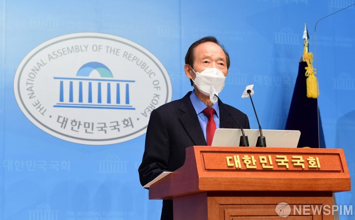 [서울=뉴스핌] 최상수 기자 = 국민의힘 대선 예비후보인 장기표 국민의힘 경남 김해을 당협위원장이 17일 서울 여의도 국회 소통관에서 ‘망국7적 정책시리즈’ 기자회견을 갖고 있다. 2021.08.17 kilroy023@newspim.com