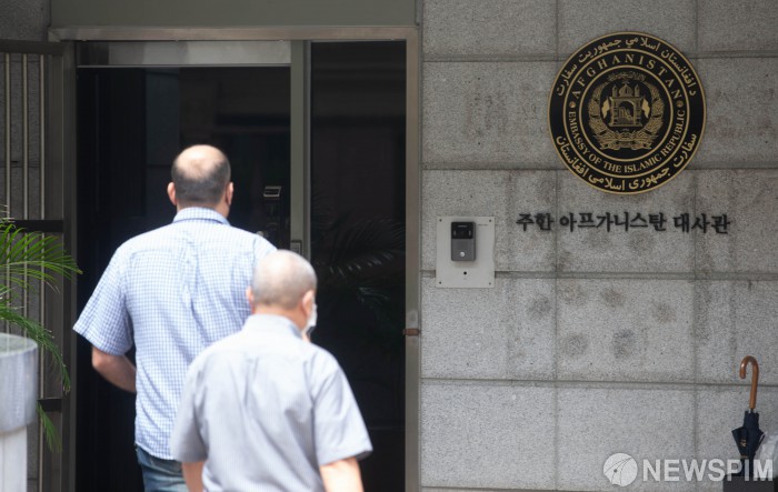 [서울=뉴스핌] 윤창빈 기자 = 이슬람 무장조직 탈레반이 아프가니스탄을 장악한 후 첫 기자회견에서 변화를 천명했다. 20년 전 집권 시절 국제 사회의 비판을 받았던 여성 억압과 이슬람법에 따른 엄격한 사회 통제를 바꾸겠다면서도 조건을 달았다. 이번 기자회견에는 탈레반이 과거 집권기처럼 국제사회로부터 따돌림당하지 않고 정상적인 국가로 인정받기 위한 의도가 깔린 것으로 풀이된다. 사진은 18일 서울 용산구에 위치한 주한 아프가니스탄 대사관의 모습. 2021.08.18 pangbin@newspim.com