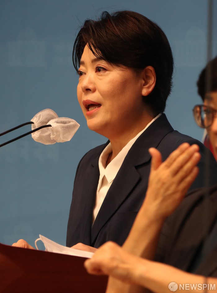 [서울=뉴스핌] 최상수 기자 = 국민권익위원회 조사에서 부동산 관련 불법 의혹이 제기된 국민의힘 윤희숙 의원이 25일 서울 여의도 국회 소통관에서 기자회견을 하고 있다. 윤 의원은 "국회의원직을 서초갑 지역구민과 국민들께 돌려드리겠다"며 의원직 사퇴하고 "이 시간부로 대선후보 경선을 향한 여정을 멈추겠다"며 대선 경선 후보직도 사퇴하겠다고 밝혔다. 2021.08.25 kilroy023@newspim.com