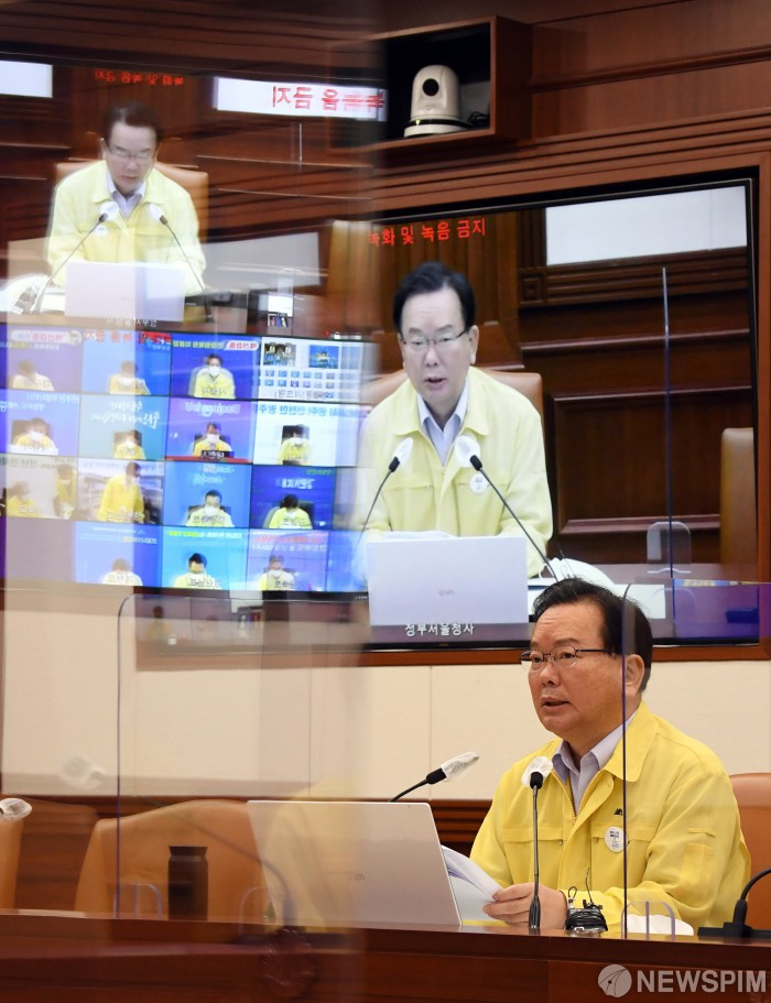 [서울=뉴스핌] 김학선 기자 = 김부겸 국무총리가 27일 오전 서울 종로구 정부서울청사에서 열린 코로나19 중앙재난안전대책본부 회의에 참석해 모두발언을 하고 있다. 2021.08.27 yooksa@newspim.com