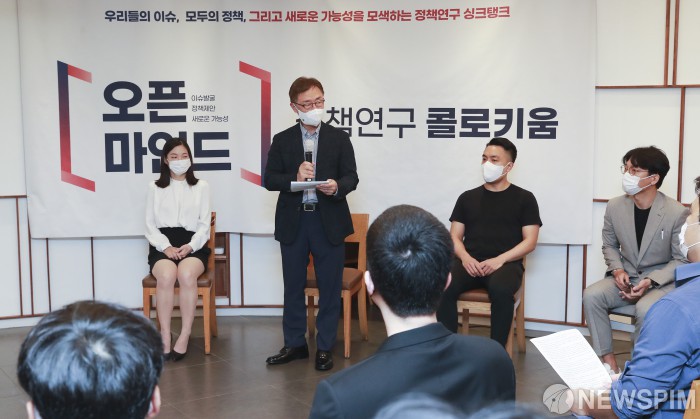[서울=뉴스핌] 이형석 기자 = 최재형 국민의힘 대선 경선 예비후보가 29일 오후 서울 여의도 인근의 카페에서 열린 오픈마인드 정책연구 콜로키움에서 축사를 하고 있다. 2021.08.29 leehs@newspim.com