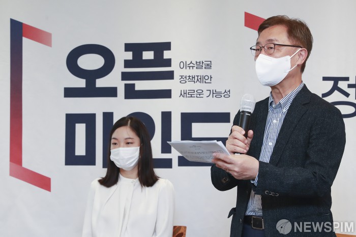 [서울=뉴스핌] 이형석 기자 = 최재형 국민의힘 대선 경선 예비후보가 29일 오후 서울 여의도 인근의 카페에서 열린 오픈마인드 정책연구 콜로키움에서 축사를 하고 있다. 2021.08.29 leehs@newspim.com