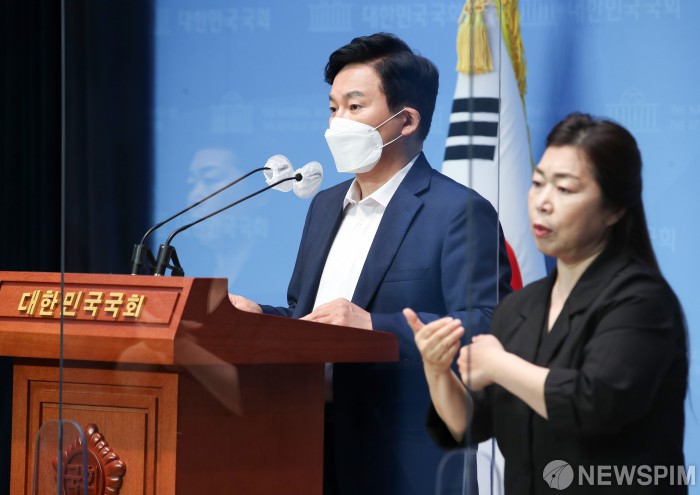 [서울=뉴스핌] 이형석 기자 = 원희룡 국민의힘 대선 예비후보가 30일 오전 국회 소통관에서 열린 기자회견에서 자신의 재산내역을 공개하고 있다. 원 후보는 이 자리에서 지난 10년간의 직계존비속 재산 변동 내역을 공개했다. 2021.08.30 leehs@newspim.com