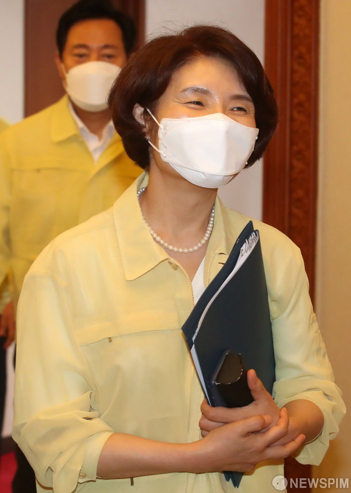 [서울=뉴스핌] 김학선 기자 = 한정애 환경부 장관이 31일 서울 종로구 정부서울청사에서 열린 국무회의에 참석하고 있다. 2021.08.31 yooksa@newspim.com