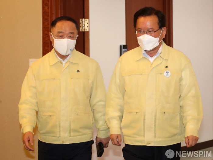 국무회의 참석하는 김부겸 총리와 홍남기 부총리