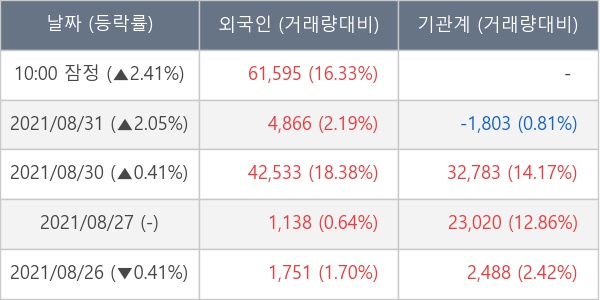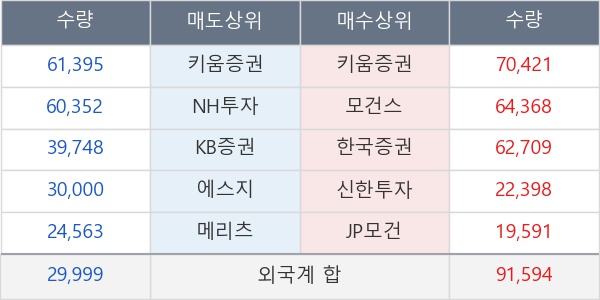 [표] 외국인ㆍ기관 순매매량 (단위 주)