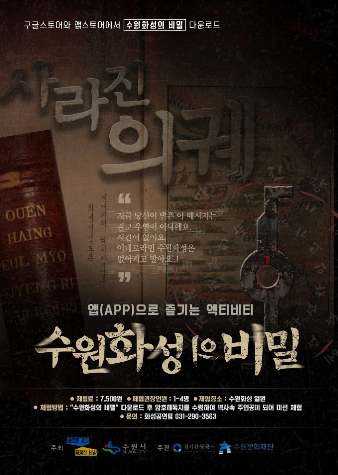 [수원=뉴스핌] 순정우 기자 = 경기 수원시와 한국철도공사가 코레일 승차권과 AR(증강현실) 미션 투어 '수원화성의 비밀'을 결합한 상품을 오는 24일 출시한다.
