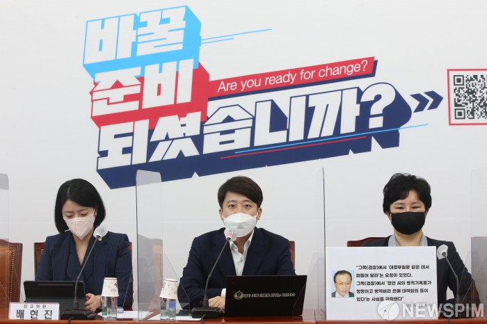 [서울=뉴스핌] 이형석 기자 = 이준석 국민의힘 대표가 9일 오전 서울 여의도 국회에서 열린 최고위원회의에서 모두발언을 하고 있다. 2021.09.09 leehs@newspim.com