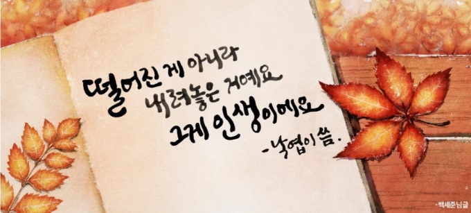 [서울=뉴스핌] 정광연 기자 = 서울시는 가을편 꿈새김판 문안공모전 당선작으로 백세준씨의 '떨어진 게 아니라 내려놓은 거예요. 그게 인생이에요. 낙엽이 씀'을 선정하고 13일 공개했다.
