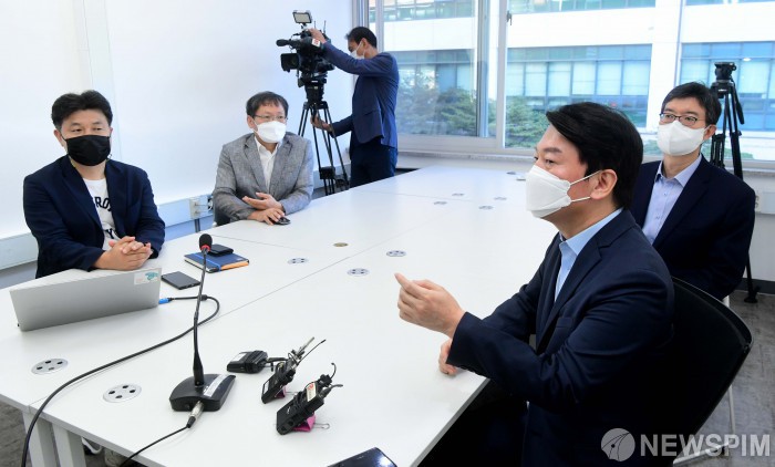 [서울=뉴스핌] 국회사진취재단 = 안철수 국민의당 대표가 15일 서울 관악구 서울대 크립토랩을 방문해 천정희 교수에게 ‘코로나동선안심이’ 애플리케이션에 관한 설명을 들은 뒤 발언하고 있다. 2021.09.15 photo@newspim.com