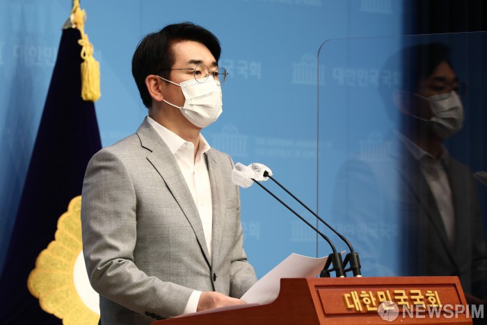 [서울=뉴스핌] 이형석 기자 = 더불어민주당 대선 경선 후보인 박용진 의원이 28일 국회 소통관에서 기자회견을 열고 내일(29일)부터 시작되는 2차 선거인단 투표에서 지지를 호소하고 있다. 2021.09.28 leehs@newspim.com