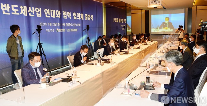 [서울=뉴스핌] 김학선 기자 = 문승욱 산업통상자원부 장관이 28일 서울 종로구 포시즌스 호텔 아라홀에서 열린 '반도체 연대와 협력 협의체 출범식'에서 인사말을 하고 있다. 2021.09.28 yooksa@newspim.com