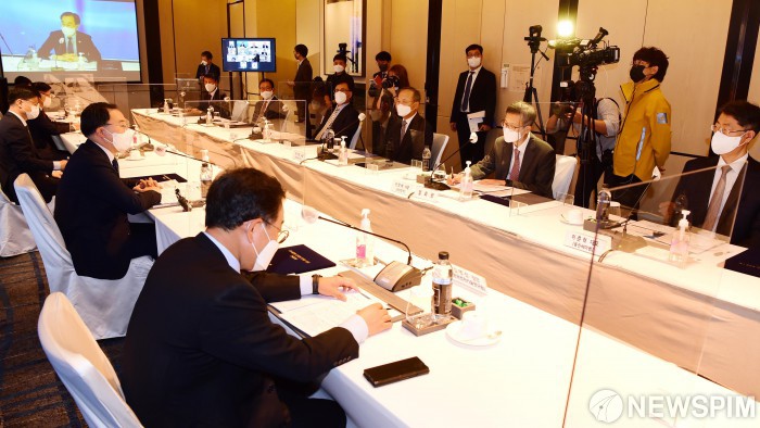 [서울=뉴스핌] 김학선 기자 = 문승욱 산업통상자원부 장관이 28일 서울 종로구 포시즌스 호텔 아라홀에서 열린 '반도체 연대와 협력 협의체 출범식'에서 인사말을 하고 있다. 2021.09.28 yooksa@newspim.com