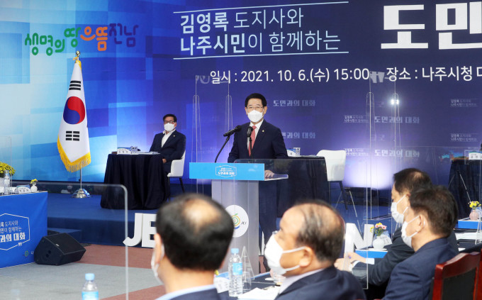 이날 도민과의 대화는 김영록 지사, 강인규 나주시장, 최명수 도의원, 김영덕 나주시의회 의장을 비롯한 시의원, 전남도·나주시 간부 공무원이 참여한 가운데 코로나19 방역수칙을 준수하며 진행했다.