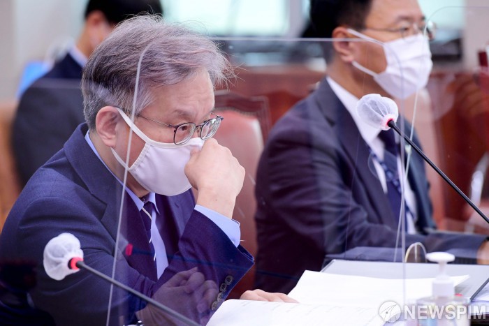 [서울=뉴스핌] 이형석 기자 = 권칠승 중소벤처기업부 장관이 7일 서울 여의도 국회에서 열린 산업통상자원중소벤처기업위원회의 중소벤처기업부 등에 대한 국정감사에서 의원의 발언을 듣고 있다. 2021.10.07 leehs@newspim.com